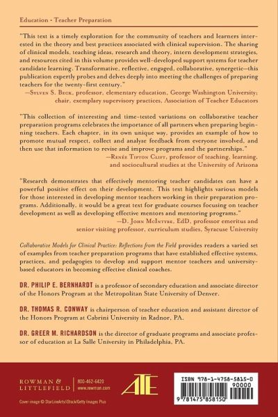 Foreword Acknowledgements Introduction Valuing the Expertise of School-Based Teacher Educators in School-University Partnerships: Creating a Sustainable Model of Mentor Teacher Preparation The Teacher Educators and Mentors (TEAM) Model: A Full-Year Clinical Residency Program A Model for Success: A Modified Yearlong Clinical Internship Building Relationships and Resilience in a Teacher Residency Program: Strategies for Successful Clinical ExperiencesEmpowering All Voices: Meaningful Mentoring Designed for a University-School PartnershipMentoring the Mentors: Developing Culturally Efficacious Educators within a Residency ModelThe Identification, Selection and Evaluation of Mentor Teachers within a Professional Development School SettingPartners in Learning: Building Mentoring Partnerships through a Shared Learning ExperienceRealizing Inspiring and Successful Educators (RISE): A University-School District Partnership to Support Latinx Teacher CandidatesSearching for Partnerships to Transform Clinical Practice Experiences: A Case StudyAbout the Editors