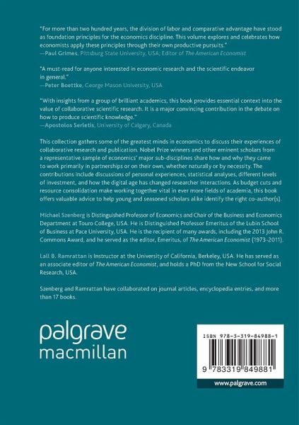 1. Introduction.- 2. On Collaboration in General Economics.- 3. Reflections on Our Collaborations in Industry Studies.- 4. The Productivity Impact of Collaborative Research in Industrial Economics.- 5. Age, Cohort and Co-Authorship: The Statistics of Collaboration.- 6. Collaborative Choices in Econometrics.- 7. On the Pleasures and Gains of Collaboration in Microeconomics.- 8. A Serial Collaborator.- 9. Collaboration with and without Co-authorship: Rocket Science versus Economic Science.- 10. Why We Collaborate in Mathematical Ways.- 11. Collaborative Is Superadditive in Political Economics.- 12. "Heinz" Harcourt's Collaborations: Over 57 varieties in Post-Keynesian Economics.- 13. Coauthors and Collaborations in Labor Economics.- 14. Two Heads are Better than One, and Three is a Magic Number in Economics.- 15. Why Collaborate inInternational Finance?.- 16. My Collaborations in Game Theory.- 17. Co-Authors in History.- 18. Collaboration: Making Eclecticism Possible in Economic Law and Politics.- 19. Collaboration and the Development of Experimental Economics: A personal perspective.
