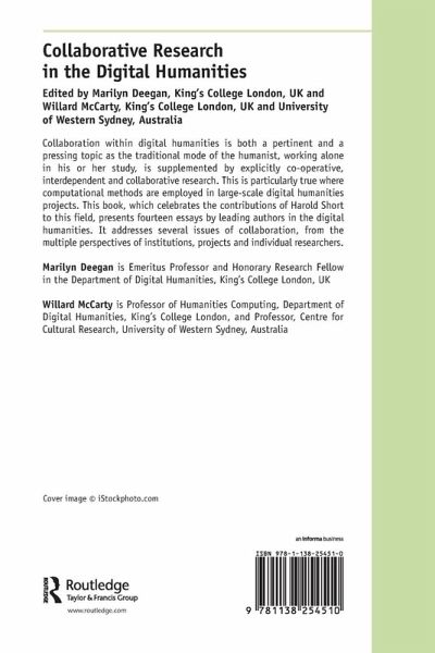 Collaboration within digital humanities is both a pertinent and a pressing topic as the traditional mode of the humanist, working alone in his or her study, is supplemented by explicitly co-operative, interdependent and collaborative research. This is particularly true where computational methods are employed in large-scale digital humanities projects. This book, which celebrates the contributions of Harold Short to this field, presents fourteen essays by leading authors in the digital humanities. It addresses several issues of collaboration, from the multiple perspectives of institutions, projects and individual researchers.