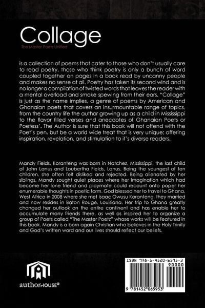 Collage is a collection of poems that cater to those who don't usually care to read poetry, those who think poetry is only a bunch of word coupled together on pages in a book read by uncanny people and makes no sense at all. Poetry has taken its second wind and is no longer a compilation of twisted words that leaves the reader with a mental overload and smoke spewing from their ears. "Collage" is just as the name implies, a genre of poems by American and Ghanaian poets that covers an insurmountable range of topics, from the country life the author growing up as a child in Mississippi to the flavor filled verses and anecdotes of Ghanaian Poets or Poetess'. The Author is sure that this book will not offend with the Poet's pen, but be a world wide treat that is very unique; offering inspiration, revelation, and stimulation to it's diverse readers.