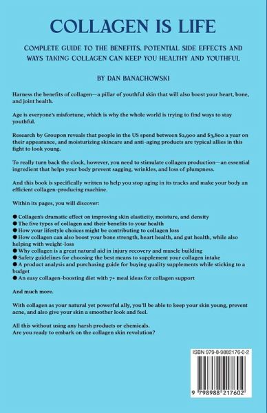 Harness the benefits of collagen-a pillar of youthful skin that will also boost your heart, bone, and joint health. Do you look at yourself in the mirror and wish you had Instagram-ready smooth, glowing skin? Do you have chronic ankle and other joint problems that cause frequent injury and pain? Would you love to have thick, healthy hair, and strong nails that don't break or crack, along with improved heart and gut health, and strong muscles? Age is everyone's misfortune, which is why the whole world is trying to find ways to stay youthful. You probably know many people in your friend group who would love to access the fountain of youth. Research by Groupon reveals that people in the US spend between $2,900 and $3,800 a year on their appearance. Over 25 percent of this total spend is on the face alone: moisturizing skincare and anti-aging products are typical allies in the fight to look young. However, many fail to realize that the true skin and health revolution comes from within. To really turn back the clock, you need to stimulate collagen production-an essential ingredient that helps your body prevent sagging, wrinkles, and loss of plumpness. And this book is specifically written to help you stop aging in its tracks and make your body an efficient collagen-producing machine. Within its pages, you will discover: * Collagen's dramatic effect on improving skin elasticity, moisture, and density-discover how you can use it to bring back your youth * There isn't only one type of collagen-there are actually five! (And the benefits each bring towards improving your health) * How your lifestyle choices might be contributing to collagen loss (and how you can prevent it) * How collagen can also boost your bone strength, heart health, and gut health, while also helping with weight-loss * Why collagen is a great natural aid in injury recovery and muscle building * There is a right and a wrong way to take collagen-follow these safety guidelines when choosing the best means to supplement your collagen intake * A product analysis and purchasing guide for buying quality supplements while sticking to a budget * An easy collagen-boosting diet that requires very little sacrifice, with 7+ meal ideas for collagen support And much more. Aging skin is a normal part of life, but that doesn't mean you can't do anything to reverse it. With collagen as your natural yet powerful ally, you'll be able to keep your skin young, prevent acne, and also give your skin a smoother look and feel. All this without using any harsh products or chemicals. If you are ready to embark on the collagen skin revolution, scroll up and click "Add to Cart" right now.