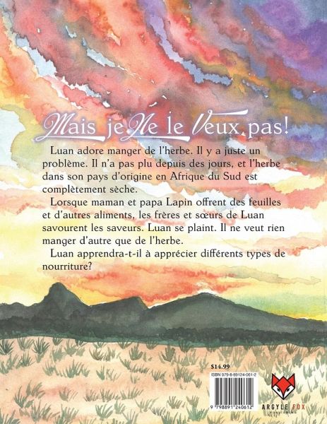 Luan adore manger de l'herbe. Il y a juste un problème. Il n'a pas plu depuis des jours, et l'herbe dans son pays d'origine en Afrique du Sud est complètement sèche. Lorsque maman et papa Lapin offrent des feuilles et d'autres aliments, les frères et surs de Luan savourent les saveurs. Luan se plaint. Il ne veut rien manger d'autre que de l'herbe. Luan apprendra-t-il à apprécier différents types de nourriture?