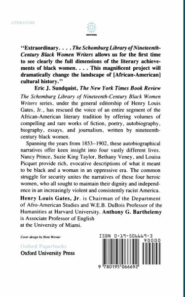 The Schomburg Library of Nineteenth-Century Black Women Writers series, under the general editorship of Henry Louis Gates, Jr., has rescued the voice of an entire segment of the African-American literary tradition by offering volumes of compelling and rare works of fiction, poetry, autobiography, biography, essays, and journalism, written by nineteenth- century black women.