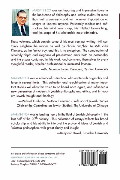 Chapter 1 Prologue to Second Printing: Review Essay by Dr. David Shatz Chapter 2 Preface Chapter 3 Memoir Chapter 4 Bibliography of Marvin Fox Chapter 5 Greek Philosophy: The Trials of Socrates. An Interpretation of the First Tetralogy; The Doctrine of the Mean in Aristotle and Maimonides: A Comparative Study; A History of the Doctrine of the Mean in Early Greek Thought: From Homer through Plato Chapter 6 Maimonides: A New View of Maimonides' Method of Contradictions; Prolegomenon to The Teachings of Maimonides by A. Cohen; Review: Julius Guttmann, The Guide of the Perplexed by Moses Maimonides; Review: Shlomo Pines, The Guide of the P