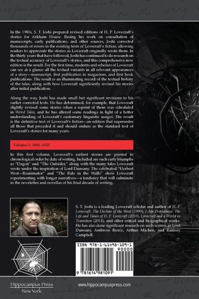 In the thirty years since S. T. Joshi prepared revised editions of H. P. Lovecraft's stories for Arkham House, Joshi has continued to do research on the textual accuracy of Lovecraft's stories, and this comprehensive new edition is the result. For the first time, students and scholars of Lovecraft can see at a glance all the textual variants in all relevant appearances of a story-manuscript, first publication in magazines, and first book publications. The result is an illuminating record of the textual history of the tales, along with how Lovecraft significantly revised his stories after initial publication. The result is the definitive text of Lovecraft's fiction-an edition that supersedes all those that preceded it and should endure as the standard text of Lovecraft's stories for many years. In this first volume, Lovecraft's earliest stories are printed in chronological order by date of writing. Included are such early triumphs as "Dagon" and "The Outsider," along with the many tales Lovecraft wrote under the inspiration of Lord Dunsany. The celebrated "Herbert West-Reanimator" and "The Rats in the Walls" show Lovecraft experimenting with longer narratives-a tendency that will culminate in the novelettes and novellas of his final decade of writing.