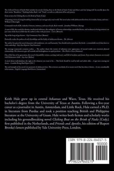 The Collected Fiction of Keith Hale includes his novels Clicking Beat on the Brink of Nada (Cody) and Heart and Soul along with his novella Space; his short stories "Breathless," "Nothing Strikes Back," and "Truck"; as well as a collection of his early poetry. All works are full and unabridged. From reviews for Clicking Beat on the Brink of Nada (Cody): A haunting vision of young friendship shattered by an outrageously cruel world. The novel aches with adolescent first loves. It is tender, funny, and true. - William S. Burroughs Commands much of J.R. Ackerley's honesty, intimacy, and ease of style. Real warmth. - Jonathan Williams, Musings A sense of life, the search for identity, intellectual militancy, the ambiguity of human relationships, unsatisfied desire, and weakness in facing existence are just some of the facets of life that the author evokes with precision. - Livres (Brussels) Top of the heap of gay fiction. - Gay Community News (Boston) Poetically evokes the pathos of early friendships and the frailty of adolescent dreams. - The Advocate The author has given his novel characters with tenderness, wit, and humanity. You should rush to purchase this book-a remarkable novel that deserves wide readership. - Bay Area Reporter (San Francisco) The message transcends common reality. ... The author charts the victory of substance over appearance, of eternal truths over transient physical relationships. His characters give off warmth and forthrightness in equal portions. - This Week in Texas (Houston) One of the best of its generation, this novel is beautifully written, exciting (and sexy), and full of incident and charm. Even minor characters are treated with Dickensian relish. - Gay Star (Belfast) A novel about individualism, the right to be whatever you want to be. ... This book should be read by kids and adults alike ... A gay teen coming out classic. - Lambda Rising Book Report (D.C.) The real triumph of the novel is its portraits of adolescent love. This reviewer can think of no recent novel that has done it better... A very considerable achievement. - English Language Book Review (Amsterdam) Watersgreen House is an independent international book publisher with editorial staff in the UK and USA. One of our aims at Watersgreen House is to showcase same-sex affection in works by important gay and bisexual authors in ways which were not possible at the time the books were originally published. We also publish nonfiction, including textbooks, as well as contemporary fiction that is literary, unusual, and provocative.