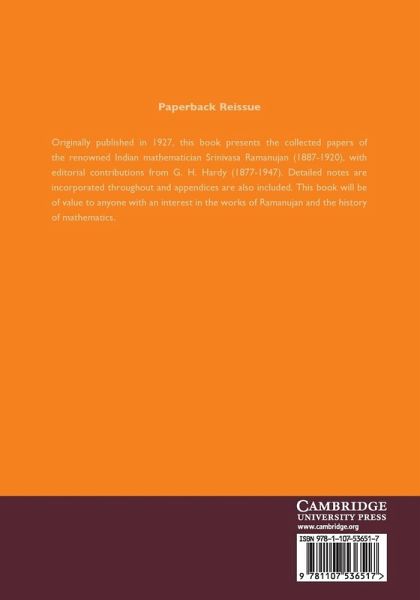 Originally published in 1927, this book presents the collected papers of the renowned Indian mathematician Srinivasa Ramanujan (1887â 1920), with editorial contributions from G. H. Hardy (1877â 1947). Detailed notes are incorporated throughout and appendices are also included.