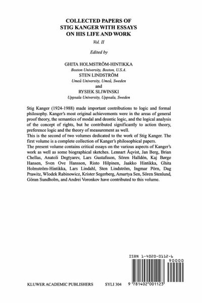 Stig Kanger (1924-1988) made important contributions to logic and formal philosophy. Kanger's most original achievements were in the areas of general proof theory, the semantics of modal and deontic logic, and the logical analysis of the concept of rights. But he contributed significantly to action theory, preference logic and the theory of measurement as well. This is the second of two volumes dedicated to the work of Stig Kanger. The first volume is a complete collection of Kanger's philosophical papers. The present volume contains critical essays on the various aspects of Kanger's work as well as some biographical sketches. Lennart Åqvist, Jan Berg, Brian Chellas, Anatoli Degtyarev, Lars Gustafsson, Sören Halldén, Kaj Børge Hansen, Sven Ove Hansson, Risto Hilpinen, Jaakko Hintikka, Ghita Holmström-Hintikka, Lars Lindahl, Sten Lindström, Ingmar Pörn, Dag Prawitz, Wlodek Rabinowicz, Krister Segerberg, Amartya Sen, Sören Stenlund, Göran Sundholm, and Andrei Voronkov have contributed to this volume.