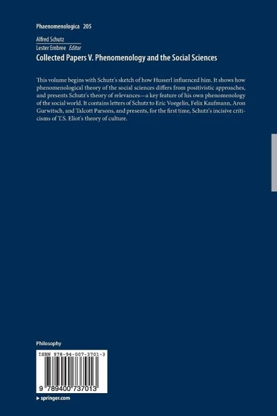 This book shows how phenomenology of the social sciences differs from positivistic approaches, and presents Schutz's theory of relevances--a key feature of his own phenomenology of the social world. It begins with Schutz's appraisal of how Husserl influenced him, and continues with exchanges between Schutz and Eric Voegelin, Felix Kaufmann, Aron Gurwitsch, and Talcott Parsons. This book presents, for the first time, Schutz's incisive criticisms of T.S. Eliot's theory of culture.
