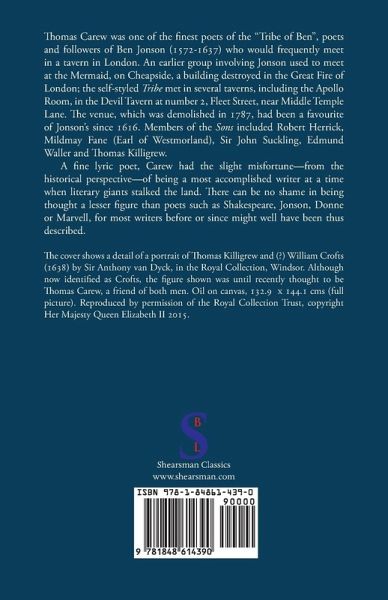 Thomas Carew (1595-1640) was, with Robert Herrick, the finest poet of the "tribe of Ben", the poets who gathered around Ben Jonson in the taverns of Southwark in the early 17th century. This collected edition is the only complete edition of his poems available.