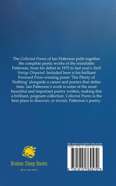 The Collected Poems of Ian Patterson pulls together the complete poetic works of the inimitable Patterson, from his debut in 1975 to last year's Shell Vestige Disputed. Included here is his brilliant Forward Prize winning poem 'The Plenty of Nothing' alongside a career and poetics that defies time. Ian Patterson's work is some of the most beautiful and important poetry ever written, making this a brilliant, poignant collection. Collected Poems is the best place to discover, or revisit, Patterson's poetry.