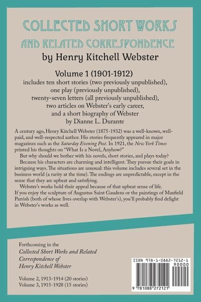 In an era of unprecedented economic growth in America, Henry Kitchell Webster (1875-1932) was one of the first to set novels and short stories in the world of business and industry. He also sympathetically portrayed the new type of woman who was emerging as the Victorian era waned. His charming, intelligent heroines seek (and usually achieve) not only romance and family, but education, careers, and economic independence. Webster's short stories were in constant demand by national magazines such as the Saturday Evening Post and McClure's. His novels (29 under his own name) sold hundreds of thousands of copies. Eleven films were based on his books and screenplays. The New York Times even published Webster's thoughts on novel-writing. Although Webster's works date to the Progressive Era and the Jazz Age, the characters, dialogue, and brisk pacing still seem refreshingly modern. Each of the 4 volumes in the Collected Short Works features illustrations commissioned by major magazines for the original appearances of Webster's short stories. Each also includes previously unpublished letters (from the Webster archive at the Newberry Library) that give insight into how and why he wrote his stories and novels. In Vol. 1, 1901 to 1912 (334 pp.): Ten short stories (2 previously unpublished), "Mrs. Thornborough's Apology" (performed in Chicago, New Haven and New York in 1912, but never published), 27 letters (previously unpublished), and articles on Webster's early career from the Saturday Evening Post (1911) and the New York Times (1912).