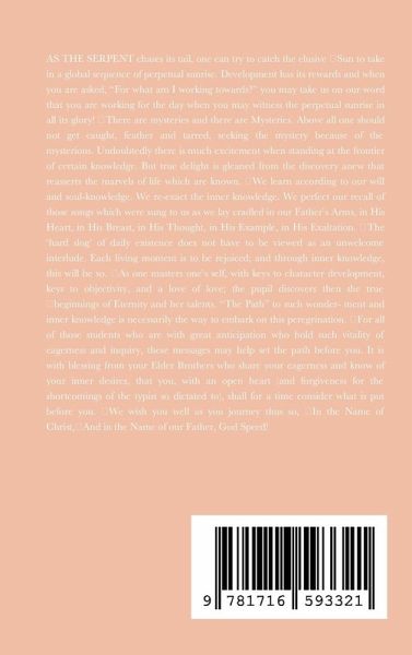 AS THE SERPENT chases its tail, one can try to catch the elusive Sun to take in a global sequence of perpetual sunrise. Development has its rewards and when you are asked, "For what am I working towards?" you may take us on our word that you are working for the day when you may witness the perpetual sunrise in all its glory! There are mysteries and there are Mysteries. Above all one should not get caught, feather and tarred, seeking the mystery because of the mysterious. Undoubtedly there is much excitement when standing at the frontier of certain knowledge. But true delight is gleaned from the discovery anew that reasserts the marvels of life which are known. We learn according to our will and soul-knowledge. We re-exact the inner knowledge. We perfect our recall of those songs which were sung to us as we lay cradled in our Father's Arms, in His Heart, in His Breast, in His Thought, in His Example, in His Exaltation. The 'hard slog' of daily existence does not have to be viewed as an unwelcome interlude. Each living moment is to be rejoiced; and through inner knowledge, this will be so. As one masters one's self, with keys to character development, keys to objectivity, and a love of love; the pupil discovers then the true beginnings of Eternity and her talents. "The Path" to such wonder- ment and inner knowledge is necessarily the way to embark on this peregrination. For all of those students who are with great anticipation who hold such vitality of eagerness and inquiry, these messages may help set the path before you. It is with blessing from your Elder Brothers who share your eagerness and know of your inner desires, that you, with an open heart (and forgiveness for the shortcomings of the typist so dictated to), shall for a time consider what is put before you. We wish you well as you journey thus so, In the Name of Christ, And in the Name of our Father, God Speed!