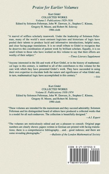 Kurt Gödel (1906 - 1978) was the most outstanding logician of the twentieth century, famous for his hallmark works on the completeness of logic, the incompleteness of number theory, and the consistency of the axiom of choice and the continuum hypothesis. He is also noted for his work on constructivity, the decision problem, and the foundations of computability theory, as well as for the strong individuality of his writings on the philosophy of mathematics. He is less well known for his discovery of unusual cosmological models for Einstein's equations, in theory permitting time travel into the past. The Collected Works is a landmark resource that draws together a lifetime of creative thought and accomplishment. The first two volumes were devoted to Gödel's publications in full (both in original and translation), and the third volume featured a wide selection of unpublished articles and lecture texts found in Gödel's Nachlass. These long-awaited final two volumes contain Gödel's correspondence of logical, philosophical, and scientific interest. Volume IV covers A to G, with H to Z in volume V; in addition, Volume V contains a full inventory of Gödel's Nachlass. All volumes include introductory notes that provide extensive explanatory and historical commentary on each body of work, English translations of material originally written in German (some transcribed from the Gabelsberger shorthand), and a complete bibliography of all works cited. Kurt Gödel: Collected Works is designed to be useful and accessible to as wide an audience as possible without sacrificing scientific or historical accuracy. The only comprehensive edition of Gödel's work available, it will be an essential part of the working library of professionals and students in logic, mathematics, philosophy, history of science, and computer science and all others who wish to be acquainted with one of the great minds of the twentieth century.
