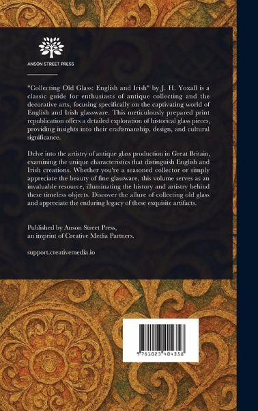 "Collecting Old Glass: English and Irish" by J. H. Yoxall is a classic guide for enthusiasts of antique collecting and the decorative arts, focusing specifically on the captivating world of English and Irish glassware. This meticulously prepared print republication offers a detailed exploration of historical glass pieces, providing insights into their craftsmanship, design, and cultural significance. Delve into the artistry of antique glass production in Great Britain, examining the unique characteristics that distinguish English and Irish creations. Whether you're a seasoned collector or simply appreciate the beauty of fine glassware, this volume serves as an invaluable resource, illuminating the history and artistry behind these timeless objects. Discover the allure of collecting old glass and appreciate the enduring legacy of these exquisite artifacts. This work has been selected by scholars as being culturally important, and is part of the knowledge base of civilization as we know it. This work is in the public domain in the United States of America, and possibly other nations. Within the United States, you may freely copy and distribute this work, as no entity (individual or corporate) has a copyright on the body of the work. Scholars believe, and we concur, that this work is important enough to be preserved, reproduced, and made generally available to the public. We appreciate your support of the preservation process, and thank you for being an important part of keeping this knowledge alive and relevant.