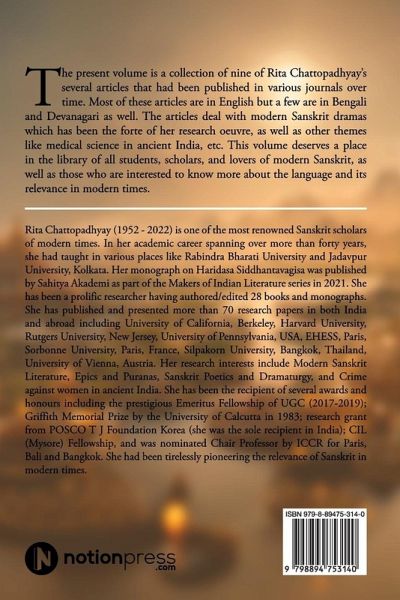 The present volume is a collection of nine of Rita Chattopadhyay's several articles that had been published in various journals over time. Most of these articles are in English but a few are in Bengali and Devanagari as well. The articles deal with modern Sanskrit dramas which has been the forte of her research oeuvre, as well as other themes like medical science in ancient India, etc. This volume deserves a place in the library of all students, scholars, and lovers of modern Sanskrit, as well as those who are interested to know more about the language and its relevance in modern times.