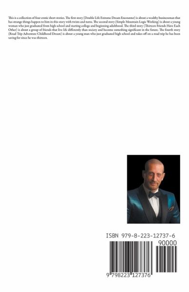 This is a collection of four erotic short stories. The first story (Double Life Extreme Dream Encounter) is about a wealthy businessman that has strange things happen to him in this story with twists and turns. The second story (Simple Mountain Logic Working) is about a young woman who just graduated from high school and starting college and beginning adulthood. The third story (Thirteen Friends Have Each Other) is about a group of friends that live life differently than society and become something significant in the future. The fourth story (Road Trip Adventure Childhood Dream) is about a young man who just graduated high school and takes off on a road trip he has been saving for since he was thirteen.