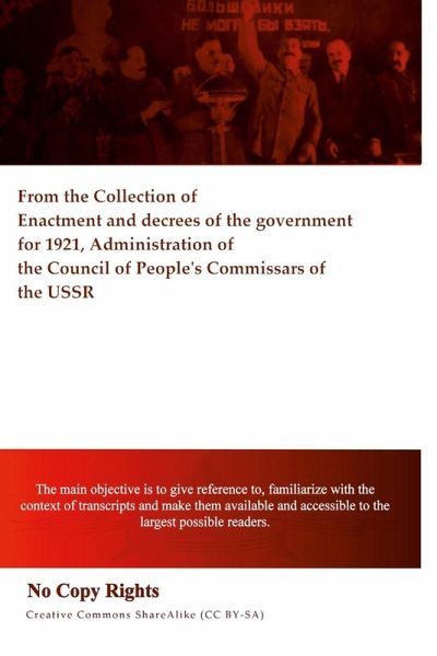 Collection of Government Documents on Workers 1920 - 1921 From the Collection of enactment and decrees and orders of the government for 1921, Administration of the Council of People's Commissars of the USSR