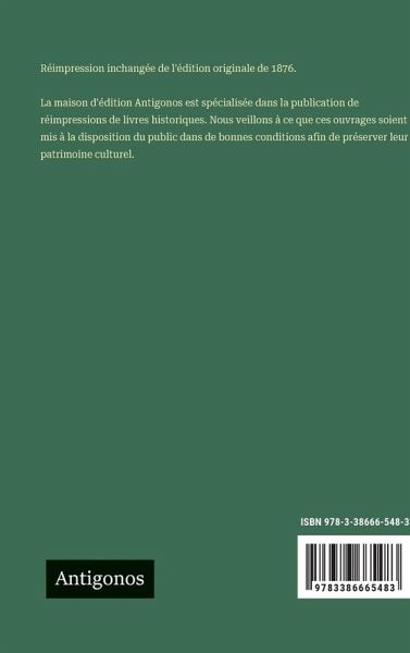 Réimpression inchangée de l'édition originale de 1876. La maison d'édition Antigonos est spécialisée dans la publication de réimpressions de livres historiques. Nous veillons à ce que ces ouvrages soient mis à la disposition du public dans de bonnes conditions afin de préserver leur patrimoine culturel.