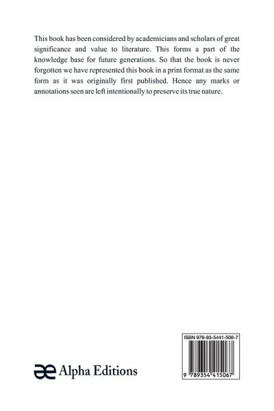 This book has been considered by academicians and scholars of great significance and value to literature. This forms a part of the knowledge base for future generations. So that the book is never forgotten we have represented this book in a print format as the same form as it was originally first published. Hence any marks or annotations seen are left intentionally to preserve its true nature.