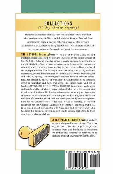 A humorous, anecdotal story about how a small entrepreneur becomes a 'collection agent' just to collect accounts receivable. This book is divided into four sections; history, collection processes, anecdotes, and samples of forms and letters. Learn and laugh. It's Your Money! Far more fun than a boring how-to book!