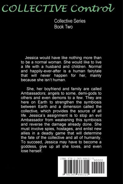 Book two of the Collective series. Jessica would have like nothing more than to be a normal woman. She would like to live a life with a husband and children. Normal and happily-ever-after is a human fairytale that will never happen for her, mainly because she isnÕt human. She, her boyfriend and family are called Ambassadors; angels to some, demi-gods to others and even demons to a few. They are here on Earth to strengthen the symbiosis between Earth and a dimension called the collective, which provides the source of all life. JessicaÕs assignment is to stop an evil Ambassador from weakening this symbiosis and reverse the damage already done. She must involve spies, hostages, and enlist new allies in a deadly game that will determine the fate of the collective and all of humanity. To succeed, Jessica may have to become a goddess, give up all she loves, and even lose herself.