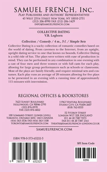 COLLECTIVE DATING is a wacky collection of romantic comedies based on the world of dating. From cavemen to the Internet, from an uptight, upright dating service to one that knows no bounds, COLLECTIVE DATING is a wild ride of fun. The plays were written with ease of production in mind. They can be performed in any combination in one evening with a cast of four men and three women or with full casts for each play, allowing for large group performances such as schools or classrooms. Most of the pl