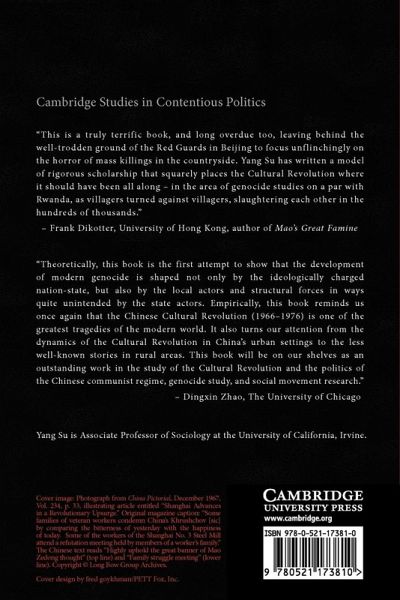 "This is a truly terrific book, and long overdue too, leaving behind the well-trodden ground of the Red Guards in Beijing to focus unflinchingly on the horror of mass killings in the countryside. Yang Su has written a model of rigorous scholarship that squarely places the Cultural Revolution where it should have been all along, in the area of genocide studies on a par with Rwanda, as villagers turned against villagers, slaughtering each other in the hundreds of thousands."