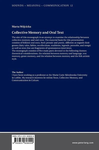 The monograph consists of five main parts devoted to the following themes: theoretical considerations, the relation between memory and language, text memory, genre memory, and the relation between memory and the folk artistic style.