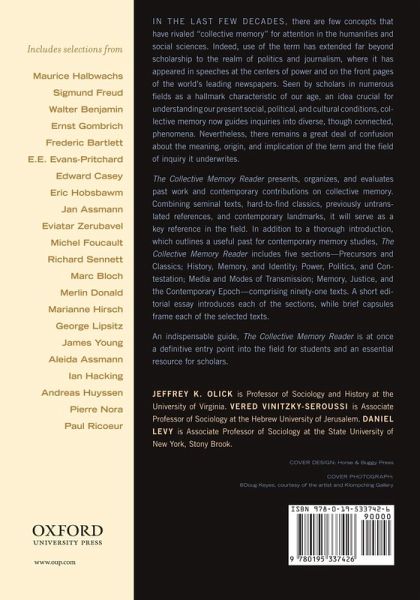 In the last few decades, there are few concepts that have rivaled "collective memory" for attention in the humanities and social sciences. Indeed, use of the term has extended far beyond scholarship to the realm of politics and journalism, where it has appeared in speeches at the centers of power and on the front pages of the world's leading newspapers. Seen by scholars in numerous fields as a hallmark characteristic of our age, an idea crucial for understanding our present social, political, and cultural conditions, collective memory now guides inquiries into diverse, though connected, phenomena. Nevertheless, there remains a great deal of confusion about the meaning, origin, and implication of the term and the field of inquiry it underwrites. The Collective Memory Reader presents, organizes, and evaluates past work and contemporary contributions on collective memory. Combining seminal texts, hard-to-find classics, previously untranslated references, and contemporary landmarks, it will serve as a key reference in the field. In addition to a thorough introduction, which outlines a useful past for contemporary memory studies, The Collective Memory Reader includes five sections-Precursors and Classics; History, Memory, and Identity; Power, Politics, and Contestation; Media and Modes of Transmission; Memory, Justice, and the Contemporary Epoch-comprising ninety-one texts. A short editorial essay introduces each of the sections, while brief capsules frame each of the selected texts. An indispensable guide, The Collective Memory Reader is at once a definitive entry point into the field for students and an essential resource for scholars.