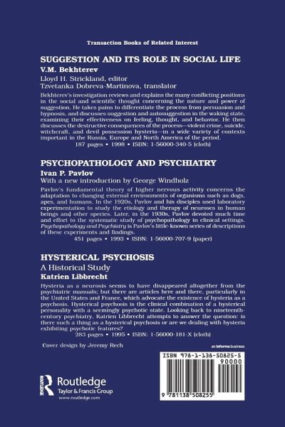 Vladimir Mikhailovitch Bekhterev was a pioneering Russian neurologist, psychiatrist, and psychologist. A highly esteemed rival of Ivan Pavlov, his achievements in the areas of personality, clinical psychology, and political and social psychology were recognized and acclaimed throughout the world. Publication of the complete text of Collective Reflexology brings to the English-speaking world this brilliant scientist's final theoretical statements on how reflexological principles, which he had been developing over a quarter century, can be extended far beyond analysis of the individual personality. Bekhterev's work grows out of his interest in group psychology and suggestion. This concept of the reflex is much broader than Pavlov's. It is applicable to every variety of life. Bekhterev compared his own analyses to those of other European thinkers such as Comte, LeBon, and Sorokin. Such analyses strained against the official Marxist-Leninist doctrines of the era. Bekhterev died in 1927, allegedly of poisoning by Stalin's henchman. As with many scientists during the Soviet era, his legacy was suppressed. In the normal course of events his name would have been as well known as that of Freud, Pavlov or, more lately, B.F. Skinner. This first publication of Bekhterev's great work in English fills a void in the fields of psychology, sociology, and the history of science. V.M. Bekhterev was director of the Military Medical Academy in St. Petersburg and founded there its Psychoneurological Institute. Among his many books are Suggestion: Its Role in Social Life (available from Transaction) and The Subject Matter and Goals of Social Psychology. Lloyd H. Strickland is professor of psychology at Carleton University. He is the author of numerous journal articles and editor of Directions in Soviet Social Psychology and Soviet and Western Perspectives in Social Psychology. "Bekhterev (1857-1927) is a formidable figure, and his work continues to deserve careful study."-Canadian Psychology