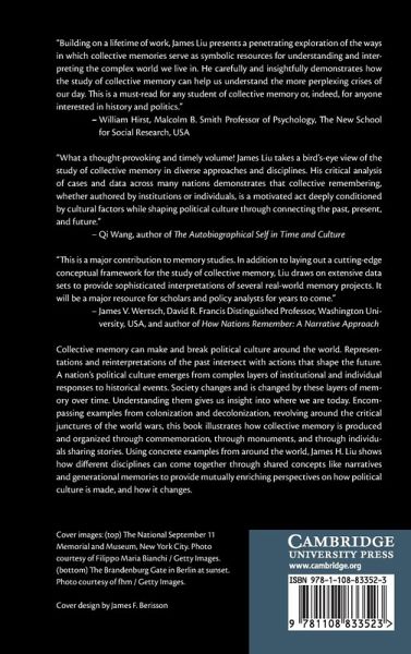 Collective memory can make and break political culture around the world. Representations and reinterpretations of the past intersect with actions that shape the future. A nation's political culture emerges from complex layers of institutional and individual responses to historical events. Society changes and is changed by these layers of memory over time. Understanding them gives us insight into where we are today. Encompassing examples from colonization and decolonization, revolving around the critical junctures of the world wars, this book illustrates how collective memory is produced and organized, through commemoration, through monuments, and through individuals sharing stories. Using concrete examples from around the world, James H. Liu shows how different disciplines can come together through shared concepts like narratives and generational memories to provide mutually enriching perspectives on how political culture is made, and how it changes.