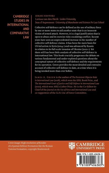 Collective self-defence involves the use of military force to aid a state that is the innocent victim of aggression. However, it has often been abusively invoked as a pretext and risks escalating conflicts. Green analyses fundamental questions about the conceptual nature of collective self-defence and its legal requirements.