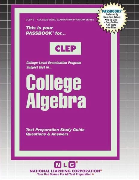 The College Level Examination Program (CLEP) enables students to demonstrate college-level achievement and earn college credit in various subject areas based on knowledge acquired through self-study, high school and adult courses, or through professional means. The CLEP College Algebra Passbook(R) prepares you by sharpening knowledge of the skills and concepts necessary to succeed on the upcoming exam and the college courses that follow. It provides hundreds of questions and answers (with detailed solutions) in the areas that will likely be covered on your upcoming exam, including but not limited to: basic algebraic operations; linear equations; quadratic equations; graphs; complex numbers; and more.