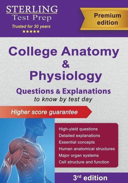 Thousands of students use Sterling Test Prep to achieve academic success!Master essential college anatomy and physiology topics and increase your grade. The topical questions in this book cover a typical college anatomy and physiology course for targeted and effective preparation. The detailed explanations outline the essential anatomy and physiology principles needed to choose the correct answer. Read the explanations carefully to learn important concepts and understand how they apply to the question. From the basic structure of the human body to the complex mechanisms of cellular processes, you will develop a better understanding of the human body, as well as physiological relationships between different anatomical systems. Learn about cell structure, cell cycle, human body planes and directions, as well as major organ systems, including endocrine, nervous, respiratory, circulatory, immune, muscular, skeletal, digestive, excretory, integumentary, and reproductive systems. Experienced instructors and researchers analyzed standard college anatomy and physiology curricula and developed this practice material that builds needed knowledge and skills. Our editorial team reviewed and systematized the content for targeted and effective learning, so students can significantly improve their understanding of the subject and succeed in class.