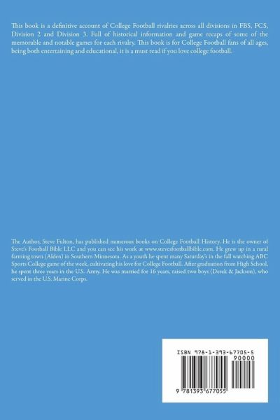 This book is a definitive account of College Football rivalries across all divisions in FBS, FCS, Division 2 and Division 3. Full of historical information and game recaps of some of the memorable and notable games for each rivalry. This book is for College Football fans of all ages, being both entertaining and educational, it is a must read if you love college football.
