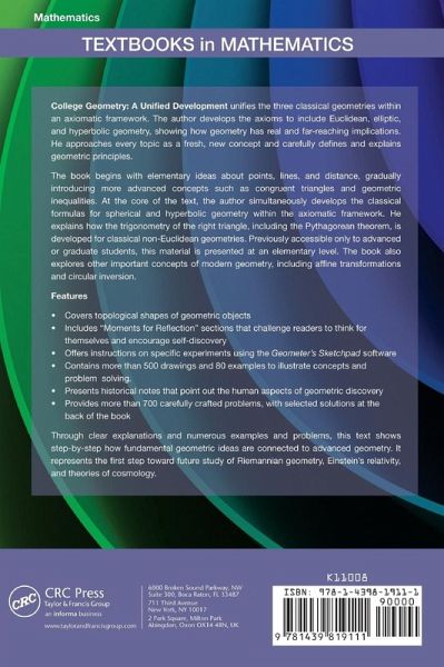 This text presents a unified treatment of the three classical geometries: Euclidean, hyperbolic, and spherical (elliptic). This unique approach of combining all three geometries simultaneously using twelve concise axioms has never appeared in book form before at this level. The text introduces each axiom, including its reasons for use and implications, and then explains it in detail. In addition to numerous figures, examples, and exercises, the book includes Geometera (TM)s Sketchpad to help students build and investigate math models, objects, figures, and graphs. The author provides programs for students to use on a supporting website. A solutions manual is available for qualifying instructors.