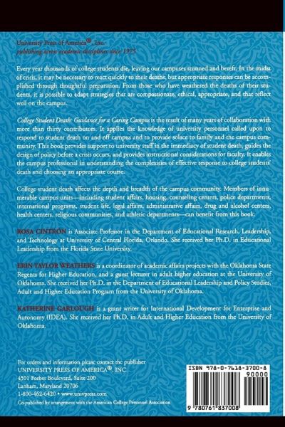 Every year thousands of college students die, leaving our campuses stunned and bereft. In the midst of crisis, it may be necessary to react quickly to their deaths, but appropriate responses can be accomplished through thoughtful preparation. From those who have weathered the deaths of their students, it is possible to adapt strategies that are compassionate, ethical, appropriate, and that reflect well on the campus. College Student Death: Guidelines for a Caring Campus is the result of many years of collaboration with more than thirty contributors. It applies the knowledge of university personnel called upon to respond to student death on and off campus and to provide solace to family and the campus community. This book provides support to university staff in the immediacy of student death, guides the design of policy before a crisis occurs, and provides instructional considerations for faculty. It enables the campus professional in understanding the complexities of effective response to college students' death and choosing an appropriate course. College student death affects the depth and breadth of the campus community. Members of innumerable campus units-including student affairs, housing, counseling centers, police departments, international programs, student life, legal affairs, administrative affairs, drug and alcohol centers, health centers, religious communities, and athletic departments-can benefit from this book.