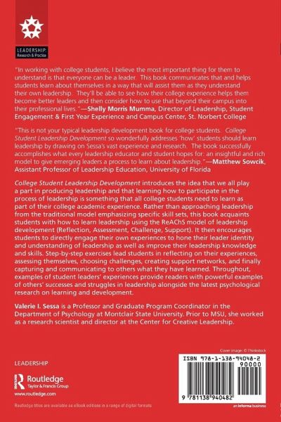 Rather than approaching leadership from the traditional model emphasizing specific skillsets, this book acquaints students with how to learn leadership using the ReAChS model of leadership development (Reflection, Assessment, Challenge, Support).