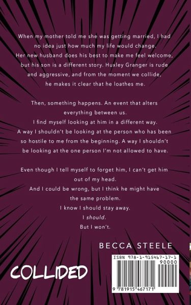 When my mother told me she was getting married, I had no idea just how much my life would change. Her new husband does his best to make me feel welcome, but his son is a different story. Huxley Granger is rude and aggressive, and from the moment we collide, he makes it clear that he loathes me. Then, something happens. An event that alters everything between us. I find myself looking at him in a different way. A way I shouldn't be looking at the person who has been so hostile to me from the beginning. A way I shouldn't be looking at the one person I'm not allowed to have. Even though I tell myself to forget him, I can't get him out of my head. And I could be wrong, but I think he might have the same problem. I know I should stay away. I should. But I won't.