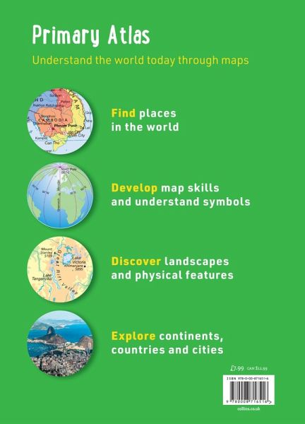 The must-have atlas for children aged 7-11 Collins Primary Atlas is a great introduction to mapping of the UK, Europe and all major regions of the world. It supports the Key Stage 2 curriculum and is suitable for children aged 7-11 years.