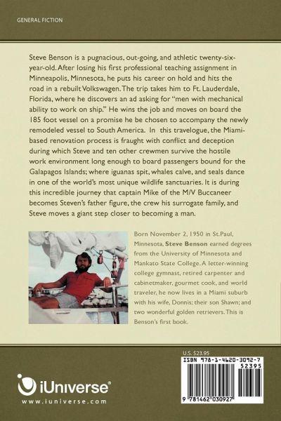 Steve Benson is a pugnacious, outgoing, and athletic twenty-five-year-old who loses his first professional teaching assignment in Minneapolis, Minnesota. He takes the layoff hard as he navigates some of the most conflict-ridden years of the late sixties. In this travelogue, Steve shares the tales of his journey as he works toward a childhood dream of working on a ship at sea. Faced with an uncertain future, he puts his teaching career on hold and hits the road in a rebuilt Volkswagen. The trip takes him to Ft. Lauderdale, where he discovers an ad asking for "men with mechanical ability to work on ship." He wins the job and moves on board on a promise he may be chosen to accompany the newly remodeled vessel to South America. Although the Miami-based renovation process is fraught with conflict and deception, Steve and ten other crewmen survive the hostile work environment long enough to take on passengers for a visit to the Galapagos Islands, where iguanas spit, whales calve, and seals dance in one of the world's most unique wildlife sanctuaries. It's on this trip that the captain becomes Steven's father figure, the crew becomes a surrogate family, and Steve moves steps closer to being a man.