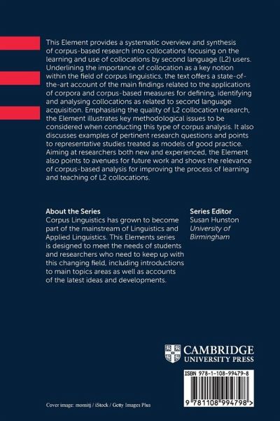 This Element discusses examples of pertinent research questions and points to representative studies treated as models of good practice. It also points to avenues for future work and shows the relevance of corpus-based analysis for improving the process of learning and teaching of L2 collocations.