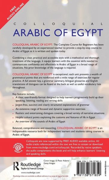 Colloquial Arabic of Egypt provides a step-by-step course in spoken Egyptian Arabic - the most widely understood dialect in the Arab world. Combining a user-friendly approach with a thorough treatment of the language, it equips learners with the essential skills needed to communicate confidently and effectively in Egyptian Arabic in a broad range of situations. No prior knowledge of the language is required. Key features include: Arabic in romanization form throughout, with optional Arabic script supplements emphasis on modern conversational language with clear pronunciation guidance progressive introduction to the Arabic alphabet to aid familiarity with simple labels and signs grammar section and bilingual glossaries for easy reference stimulating exercises with lively illustrations new e-resources at www.routledge.com/cw/colloquialsoffering supplementary materials for teachers and learners, including extra activities (and answers), vocabulary lists and cultural information, ideas for group activities linked to each unit in the course, listing of the complete Arabic alphabet, notes comparing Egyptian and Standard Arabic and downloadable additional audio tracks. Balanced, comprehensive and rewarding, this new and revised edition of Colloquial Arabic of Egypt offers an indispensable resource both for independent learners and for students taking courses in Egyptian Arabic. By the end of this course, you will be at Level B1 of the Common European Framework for Languages and at the Intermediate-Mid on the ACTFL proficiency scales. Audio material to accompany the course is available to download free in MP3 format from www.routledge.com/cw/colloquials. Recorded by native speakers, the audio material features the dialogues and texts from the book and will help develop your listening and pronunciation skills.