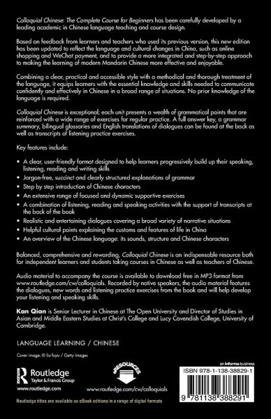 Colloquial Chinese: The Complete Course for Beginners has been carefully developed by a leading academic in Chinese language teaching and course design.