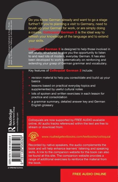 Colloquial German 2 is designed to help those involved in self-study; structured to give you the opportunity to listen to and read lots of modern, everyday German. It has also been developed to work systematically on reinforcing and extending your grasp of German grammar and vocabulary.