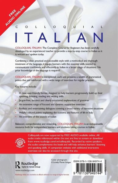 Colloquial Italian: The Complete Course for Beginners has been carefully developed by an experienced teacher to provide a step-by-step course to Italian as it is written and spoken today.