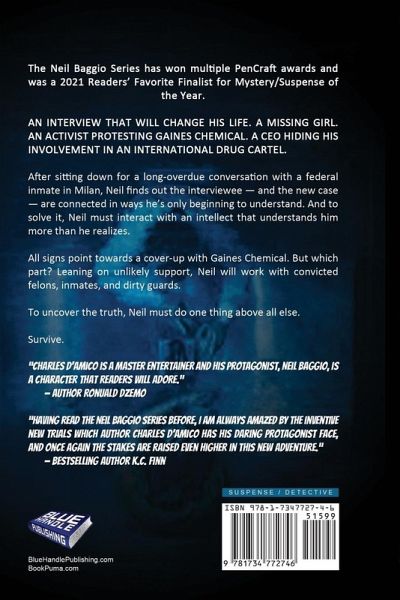 SITTING IN FCI MILAN, THE FEDERAL PRISON FOR AN INTERVIEW THAT WILL CHANGE HIS LIFE AND MAKE IT HARD TO FOCUS ON THIS NEW CASE. THE DISAPPEARANCE OF A MISSING GIRL, AN ACTIVIST PROTESTING GAINES CHEMICAL. NEIL WILL SOON FIND OUT THE HEAD OF GAINES IS MORE INVOLVED THAN FIRST ANTICIPATED. Neil Baggio, sitting down for a conversation long overdue, with an inmate at FCI Milan. Neil will find out the interview, along with this new case, are tied together beyond him. This case will have Neil sending his team to international waters while he stays home to work the case and the interview. This case brings many questions to the forefront as he must interact with an intellect that understands him more than he realizes. With Gaines chemical, all signs point towards a cover-up, but which part. There are so many skeletons in the closet of this powerful chemical company. Once a staple in the community, built by the CEO's parents, he has turned his family company into an enterprise. Leaning on unlikely support, Neil will work with convicted felons, inmates, and dirty guards to survive this case. But will he survive it, will he uncover all that lies below?