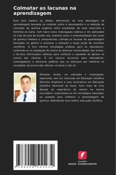 Este livro explora os efeitos diferenciais de uma abordagem de aprendizagem baseada no contexto sobre o desempenho e a retenção de conceitos de química orgânica entre estudantes do sexo masculino e feminino no Gana. Com base numa investigação extensa e em aplicações na sala de aula do mundo real, examina como a contextualização das aulas de química melhora a compreensão, colmata as lacunas de aprendizagem baseadas no género e promove a retenção a longo prazo de conceitos científicos. O livro oferece estratégias práticas para os educadores, centrando-se na adaptação do ensino às diversas necessidades dos alunos, e fornece informações valiosas para melhorar a equidade de género no ensino das ciências. É um recurso essencial para educadores, investigadores e decisores políticos que se esforçam por melhorar os resultados do ensino das ciências no Gana e não só.