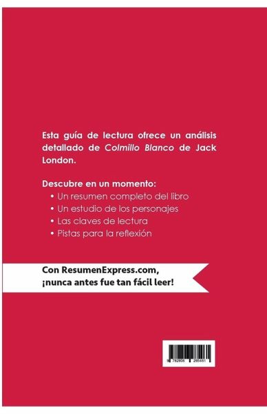 ResumenExpress.com presenta y analiza en esta guía de lectura Colmillo Blanco, una de las obras más célebres de Jack London, que confronta a la naturaleza salvaje con la civilización y el poder, a veces abusivo, del hombre. ¡Ya no tienes que leer y resumir todo el libro, nosotros lo hemos hecho por ti! Esta guía incluye: ¿ Un resumen completo del libro ¿ Un estudio de los personajes ¿ Las claves de lectura ¿ Pistas para la reflexión ¿Por qué elegir ResumenExpress.com? Para aprender de forma rápida. Porque nuestras publicaciones están escritas con un estilo claro y conciso que te ayudará a ganar tiempo y a entender las obras sin esfuerzo. Disponibles en formato impreso y digital, te acompañarán en tu aventura literaria. Toma una dosis de literatura acelerada con ResumenExpress.com